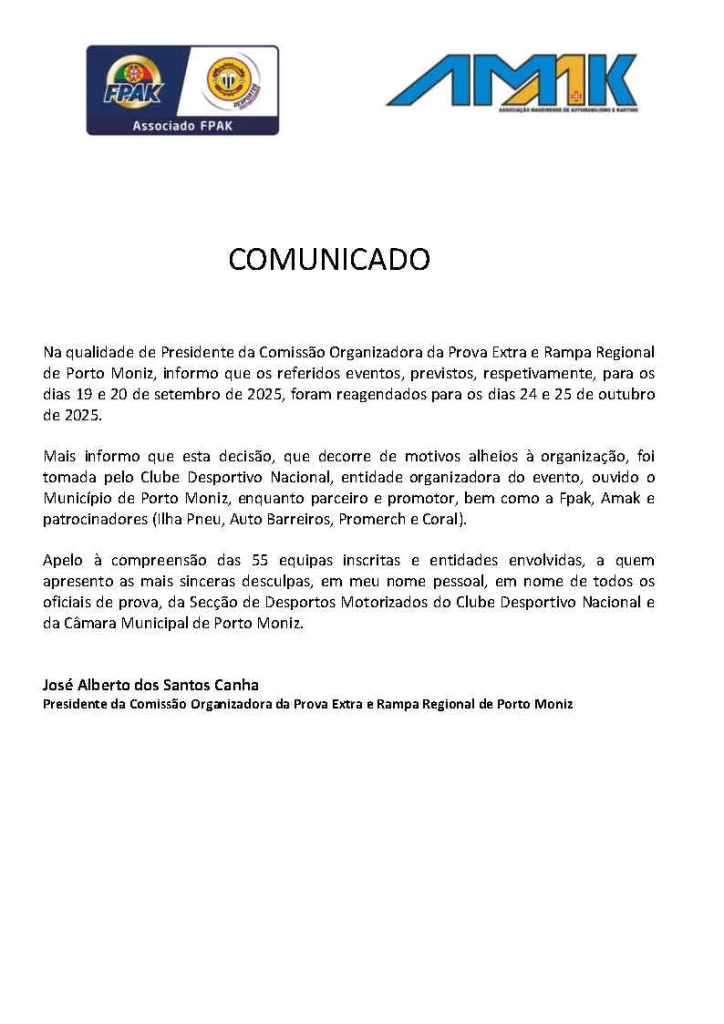 Informamos que as inscrições para a primeira prova dos desportos motorizados da RAM estão abertas e encerram a 28 de fevereiro às 20:00 e devem ser acompanhas da respetiva taxa de inscrição e de seguro no Portal da Prova na Fpak.